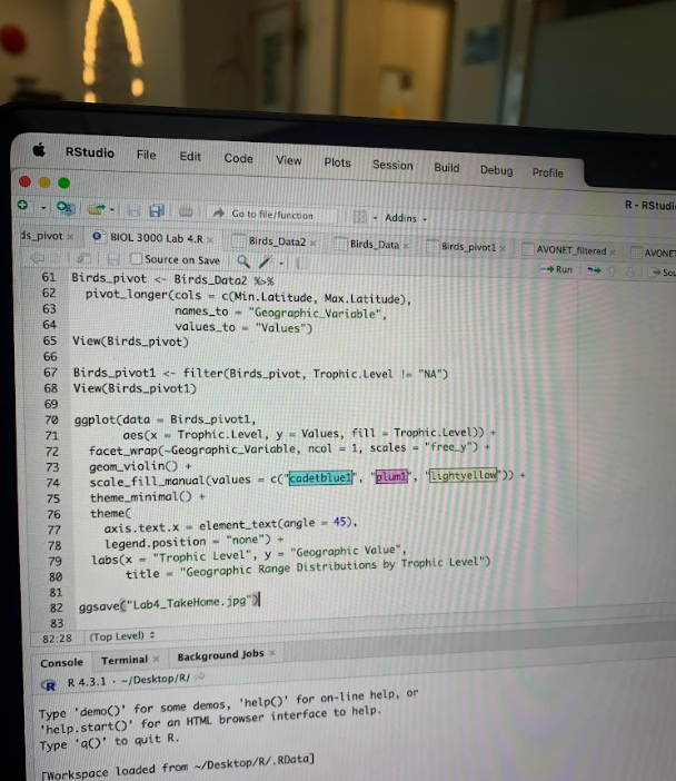In this course students are introduced to statistical procedures for biological research. Topics I have learned include hypothesis and prediction generation, distribution types, linear regression, and ANOVA statistics. The computer laboratory portion of the course provided me with hands-on computer experience in graphical and statistical analysis using the R programming language. The skills I learned in this course will significantly impact how I conduct statistical analysis of data for my honours project.
