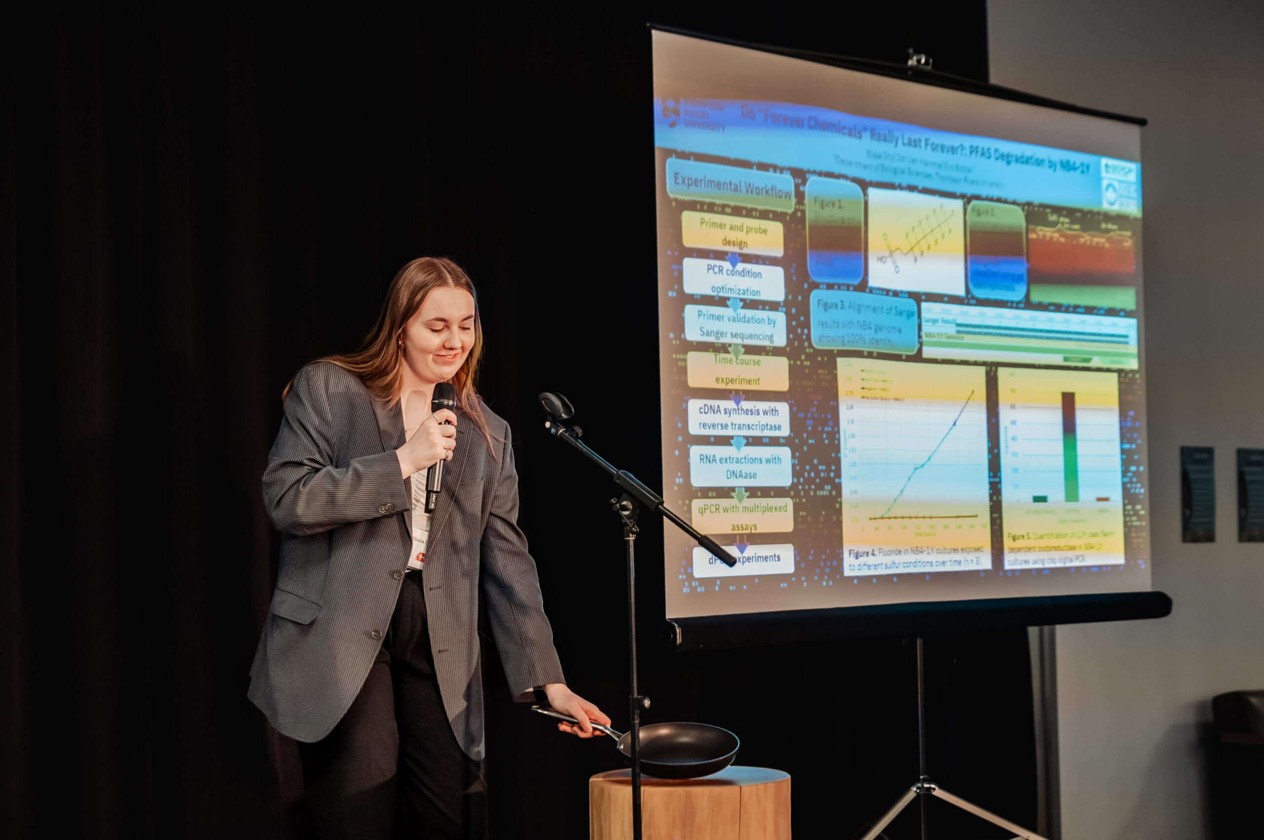 Over the past few years, my research has focused on the environmental impact and breakdown of perfluoroalkyl and polyfluoroalkyl substances (PFAS) by microbes. This topic has piqued interest in scientific communities around the world as the threat of climate change looms larger. Entering university, I knew I wanted to contribute meaningfully to environmental and human health. Therefore, I am proud that my undergraduate research will add to the rapidly expanding body of knowledge on PFAS degradation, and I’ve realized even early career scientific contributions can be significant.
